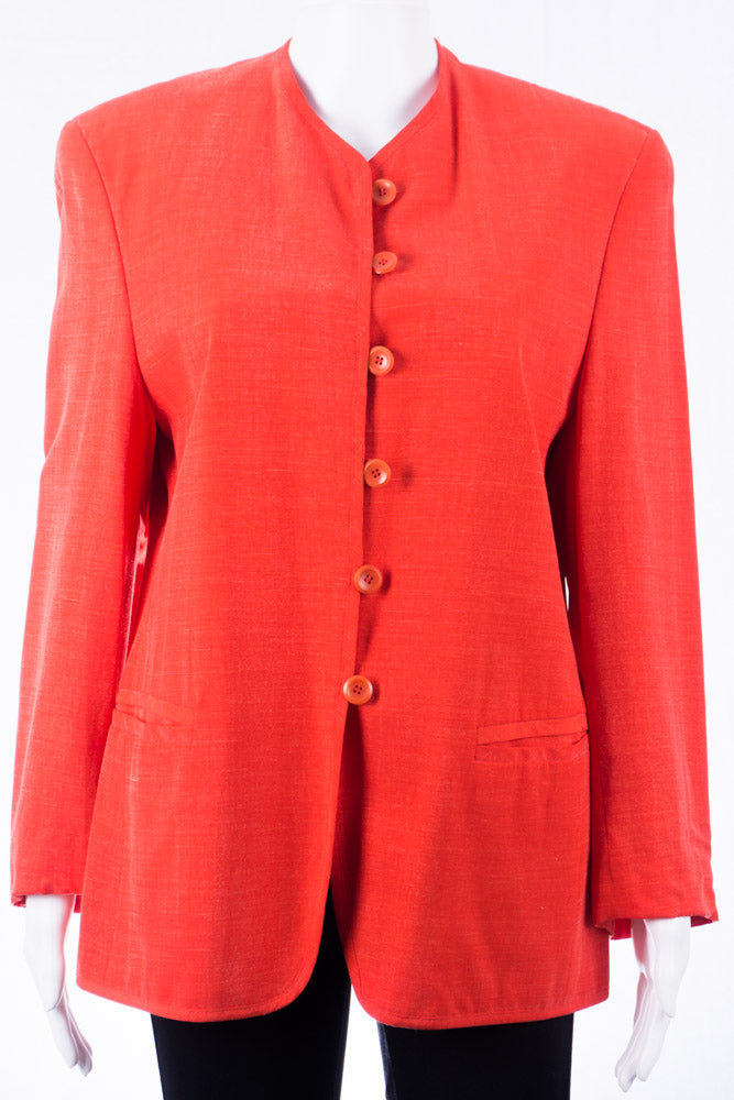 Material: Viskose-Cupro-Leinen-Mix Label: Goldix V-Ausschnitt Eingefasste Kanten Knopfleiste Halbverdeckte Knöpfe Zwei Eingrifftaschen Dekorative Knöpfe am Ärmelabschluss Leicht taillierter Schnitt Größe: 38 Rückenlänge: 69 cm Schulterbreite: 41 cm Ärmellänge: 59 cm Sehr guter Vintage Zustand Vintage Blazer aus leichtem Material, anschmiegsam und der ideale Begleiter an lauen Sommerabenden.