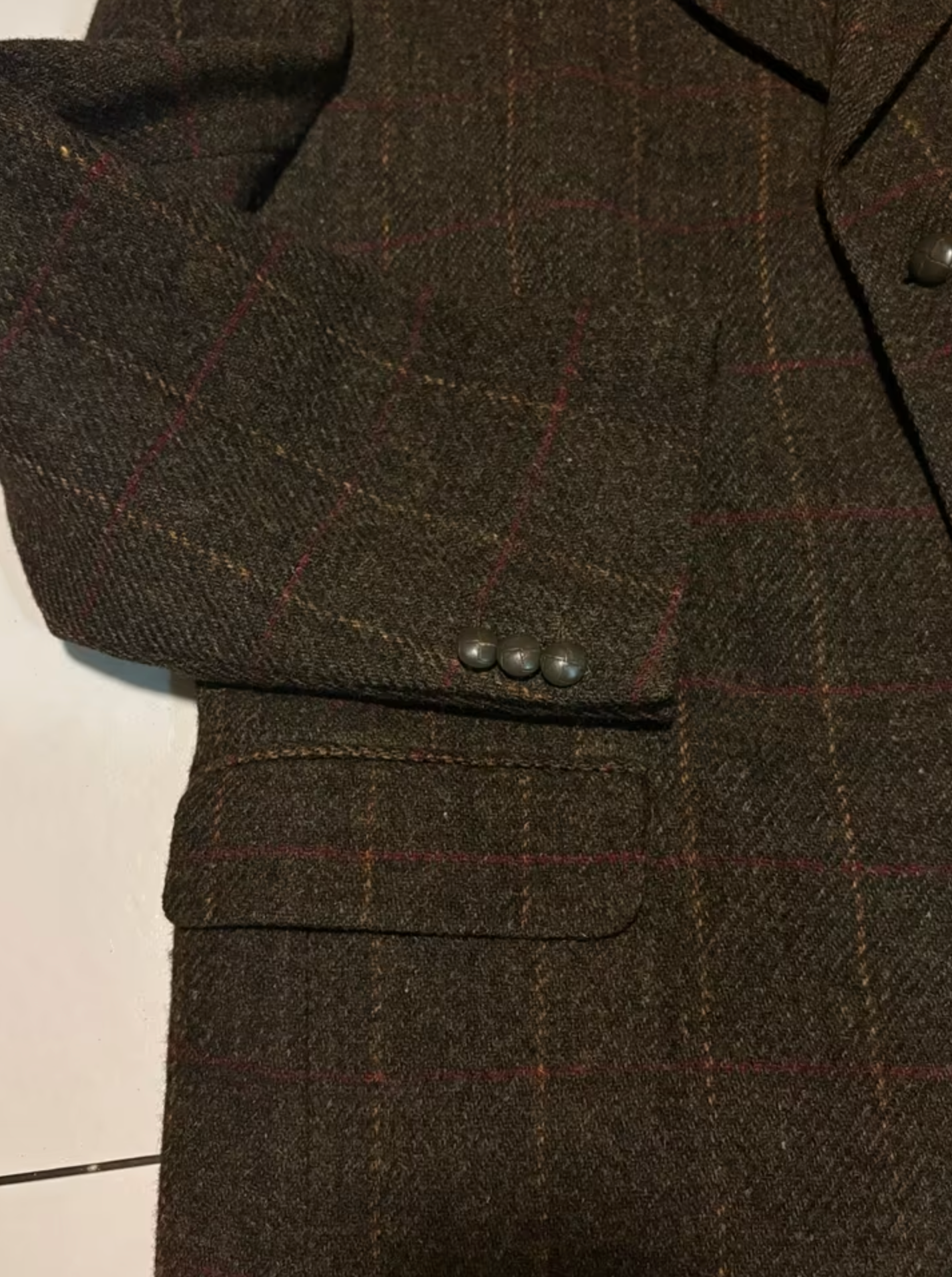 Material: Reine Schurwolle Label: Burberrys; Made in Germany Offenes Revers Hand Woven - Harris Tweed Brustleistentasche Knopfverschluss Zwei paspelierte Pattentaschen Zierknöpfe am Ärmelabschluss Gehschlitze Größe: 27 entspricht 54 (XL) (Maße beachten) Rückenlänge: 76 cm Schulterbreite: 52 cm Achsel zu Achsel: 63 cm Ärmellänge: 64 cm Sehr guter Zustand Vintage Tweed Sakko des Kultlabels Burberrys aus reiner Schurwolle. Klassisches Karomuster und hochwertige Verarbeitung überzeugen.