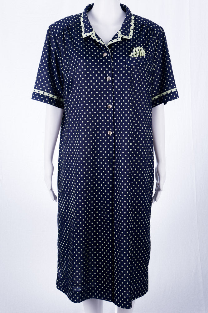 Material: Kunstfaser Dekade: 60`s;s / 70`s;s V-Ausschnitt Umlegekragen Halbe Knopfleiste auf der Vorderseite Leichtes Unterkleid Brustleistentasche mit Einstecktuch Leichte A-Linie Polka-Dot in Grün/Blau Größe: 24 enspricht eher 44 L Rückenlänge: 110 cm Schulterbreite: 44 cm Sehr guter Vintage Zustand 60er Jahre Vintage Kleid im Polka-Dot Design. Toller Farb-Mix mit fiffigem Schnitt und liebevollen Details. Ganz im Zeichen der 60er Jahre Mode.