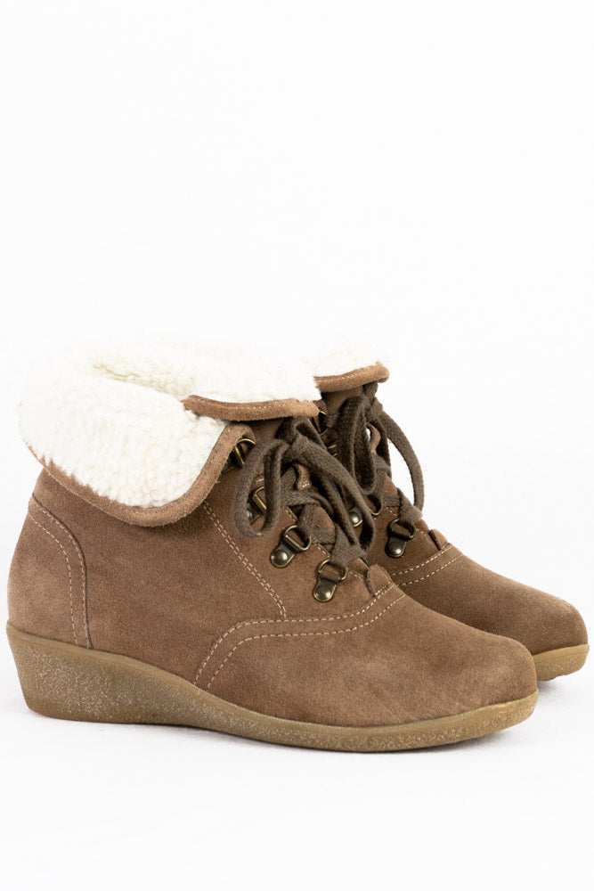 Material: Wildleder Label: Vitaform Zulaufende Kappe Wärmendes Textilfutter Schnürverschluss Keilabsatz Größenangabe: 37 Sohle: Synthetik Absatzhöhe: 3,5 cm Sehr guter Zustand